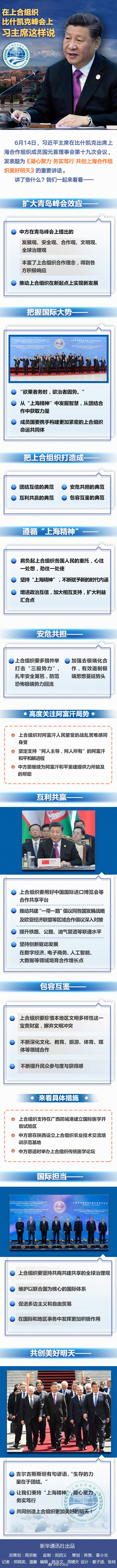 6月14日,習(xí)近平主席在比什凱克出席上海合作組織成員國元首理事會(huì)第十九次會(huì)議,發(fā)表題為《凝心聚力 務(wù)實(shí)篤行 共創(chuàng)上海合作組織美好明天》的重要講話。