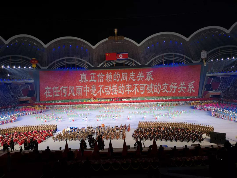 這臺演出為習(xí)近平此訪專門精心創(chuàng)作,數(shù)萬名朝鮮演員參加表演,朝鮮三大樂團(tuán)首次同臺獻(xiàn)藝,整場演出氣勢恢宏、震撼感人。