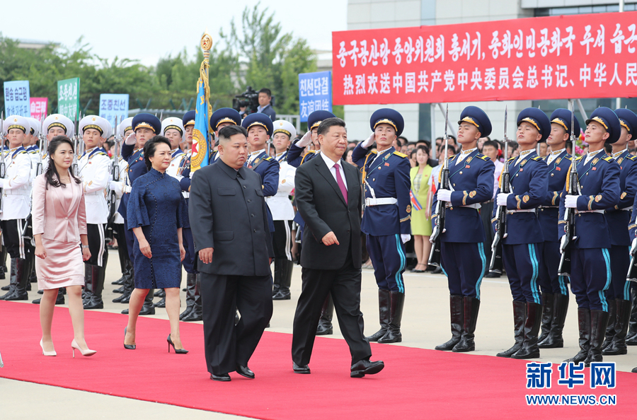 6月21日,中共中央總書記、國家主席習(xí)近平結(jié)束對朝鮮的國事訪問離開平壤回國。離開前,習(xí)近平和夫人彭麗媛出席朝鮮勞動黨委員長、國務(wù)委員會委員長金正恩和夫人李雪主在機場舉行的歡送儀式。新華社記者 鞠鵬 攝