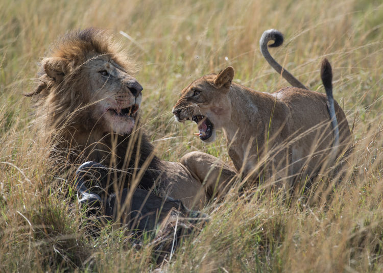 同一個(gè)獅群的雄獅之間很少會(huì)發(fā)生肢體沖突。相反,它們之間非常默契并相互依賴(lài),不僅共同保護(hù)獅群免受斑鬣狗、大象和野牛的騷擾,而且共同抵御其他獅群或外來(lái)流浪獅的入侵。
