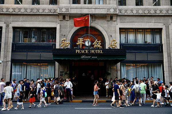 夜幕降臨,在燈光的輝映下,和平飯店更顯滄桑與榮耀。這座已有90年歷史的飯店曾經(jīng)見證過許多中美兩國(guó)交往的重要場(chǎng)景,不僅老布什、克林頓、奧巴馬等多位美國(guó)前政要曾來過這里,1971年美國(guó)乒乓代表團(tuán)訪問中國(guó)時(shí),也曾住在這里。