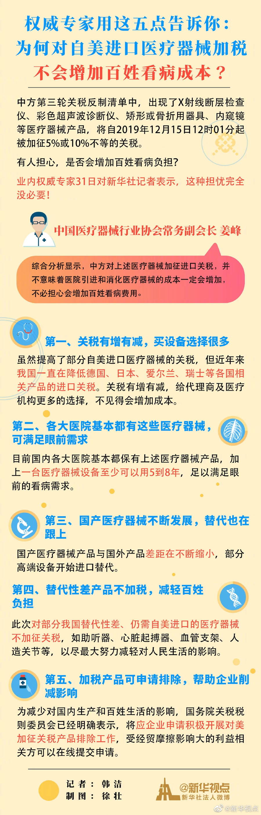 對(duì)此,中國醫(yī)療器械行業(yè)協(xié)會(huì)常務(wù)副會(huì)長姜峰31日接受記者采訪時(shí)說,綜合分析顯示,中方對(duì)上述醫(yī)療器械加征進(jìn)口關(guān)稅,并不意味著醫(yī)院引進(jìn)和消化醫(yī)療器械的成本一定會(huì)增加,不必?fù)?dān)心會(huì)增加百姓看病費(fèi)用。