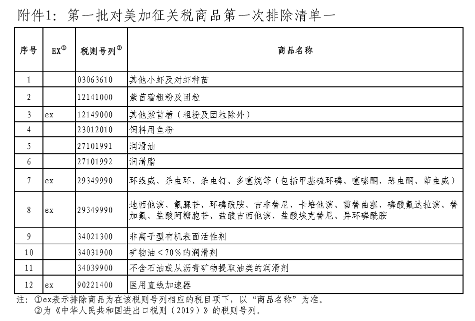 其中,清單一所列商品,自2019年9月17日至2020年9月16日,不再加征我為反制美301措施所加征的關(guān)稅。對(duì)已加征的關(guān)稅稅款予以退還,相關(guān)進(jìn)口企業(yè)應(yīng)自排除清單公布之日起6個(gè)月內(nèi)按規(guī)定向海關(guān)申請(qǐng)辦理。