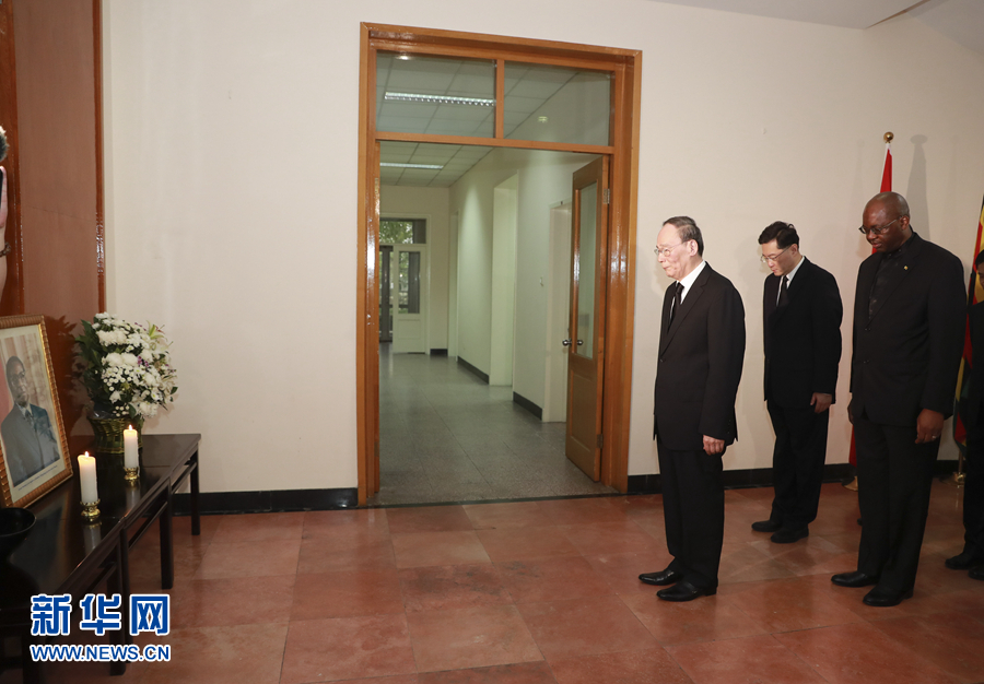 王岐山在穆加貝遺像前肅立默哀,并在吊唁簿上題詞,代表中國政府和人民對穆加貝的逝世表示最深切的哀悼,向津巴布韋政府和人民以及穆加貝的親屬表示最誠摯的慰問。王岐山表示,穆加貝是津巴布韋和非洲杰出政治家和民族解放運動領(lǐng)導(dǎo)人,為推動中津、中非友好作出了卓越貢獻。中方珍視中津傳統(tǒng)友誼,愿同津巴布韋政府和人民一道,推動中津全面戰(zhàn)略合作伙伴關(guān)系不斷向前發(fā)展。相信在姆南加古瓦總統(tǒng)領(lǐng)導(dǎo)下,津巴布韋人民一定會化悲痛為力量,在實現(xiàn)國家穩(wěn)定和建設(shè)發(fā)展道路上不斷取得新的更大成就。