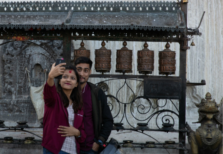 山多、古跡多、節(jié)日多是尼泊爾為人津津樂道的三個特色?!暗沦惞?jié)”是尼泊爾的最大節(jié)日。與中國人過春節(jié)習俗相似,尼泊爾人也要在節(jié)日期間家庭團聚、走親訪友。額頭的紅色“提卡”是來自長輩的祝福。新華社記者王婧嬙攝