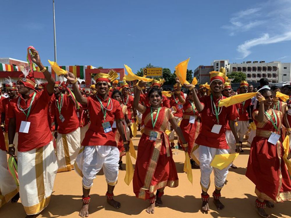 印度民眾載歌載舞迎接習(xí)近平主席。新華社記者申宏攝