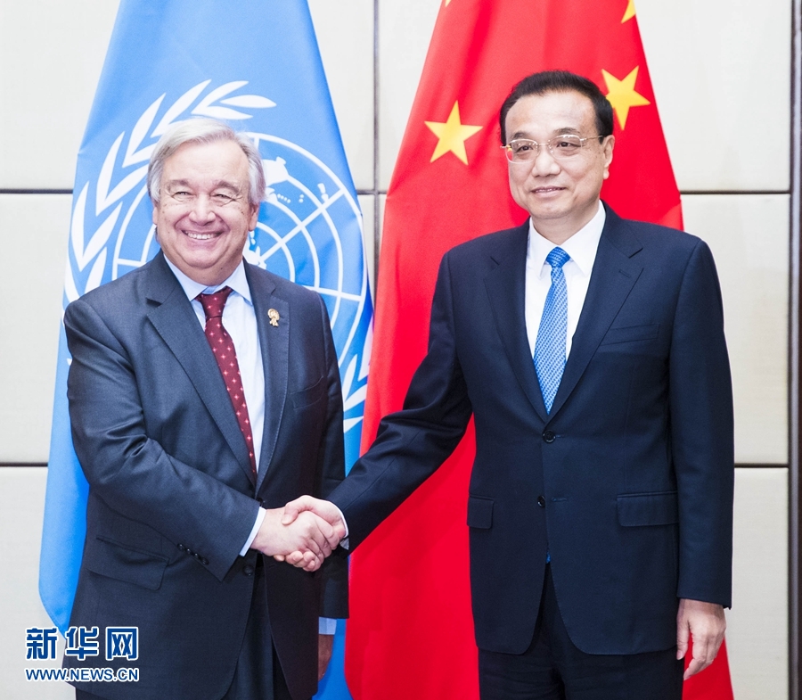 11月3日,國務(wù)院總理李克強(qiáng)在曼谷會見聯(lián)合國秘書長古特雷斯。 新華社記者 黃敬文 攝