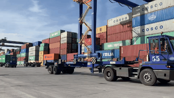 從進(jìn)入比雷埃夫斯集裝箱碼頭大門起,工作人員就提醒記者:“碼頭非常繁忙!務(wù)必注意安全。”