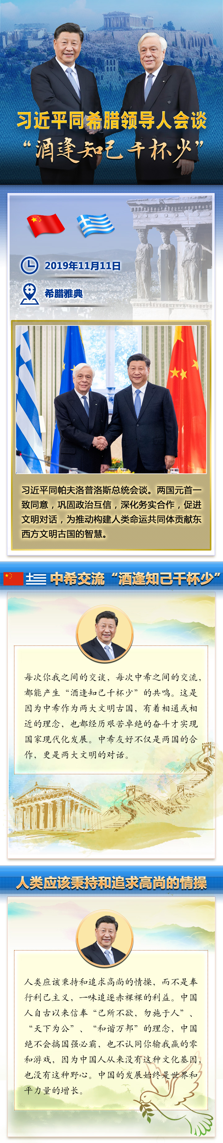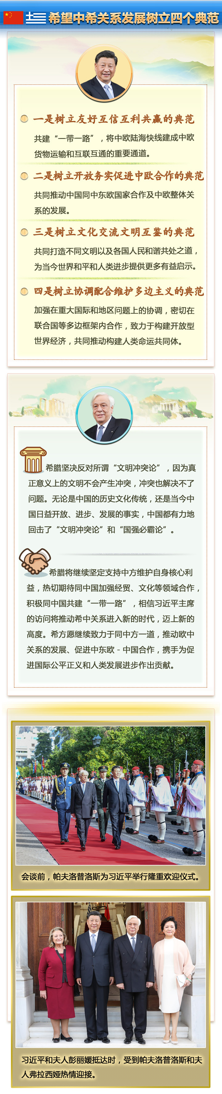 新華社雅典11月12日電 國家主席習近平11月10日晚抵達雅典,開始對希臘進行國事訪問。11日上午,習主席的訪問活動異常密集:向希臘無名戰(zhàn)士紀念碑獻花圈,出席希臘總統(tǒng)帕夫洛普洛斯舉行的隆重歡迎儀式并同帕夫洛普洛斯舉行會談,旋即又同總理米佐塔基斯舉行會談、出席合作文本交換儀式、共同會見記者。中希兩國領導人就雙邊關系及共同關心的國際和地區(qū)問題深入交換意見,達成廣泛共識。