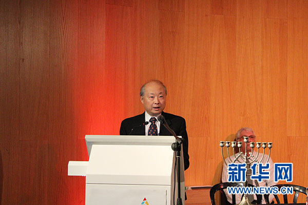 中國(guó)駐以色列大使詹永新發(fā)表致辭。記者 尚昊 攝