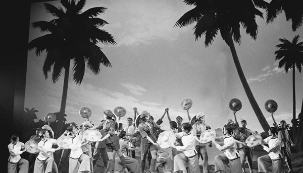 1973年2月10日,日本松山芭蕾舞團(tuán)的演員和中國舞劇團(tuán)的演員,在北京天橋劇場同臺演出《紅色娘子軍》。 新華社記者王景英攝