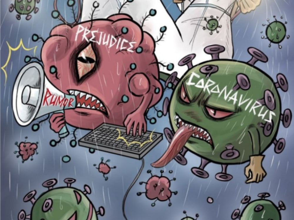 新華社2月29日在海外社交媒體平臺(tái)上播發(fā)以反對(duì)偏見和謠言為主題的“戰(zhàn)疫”漫畫。