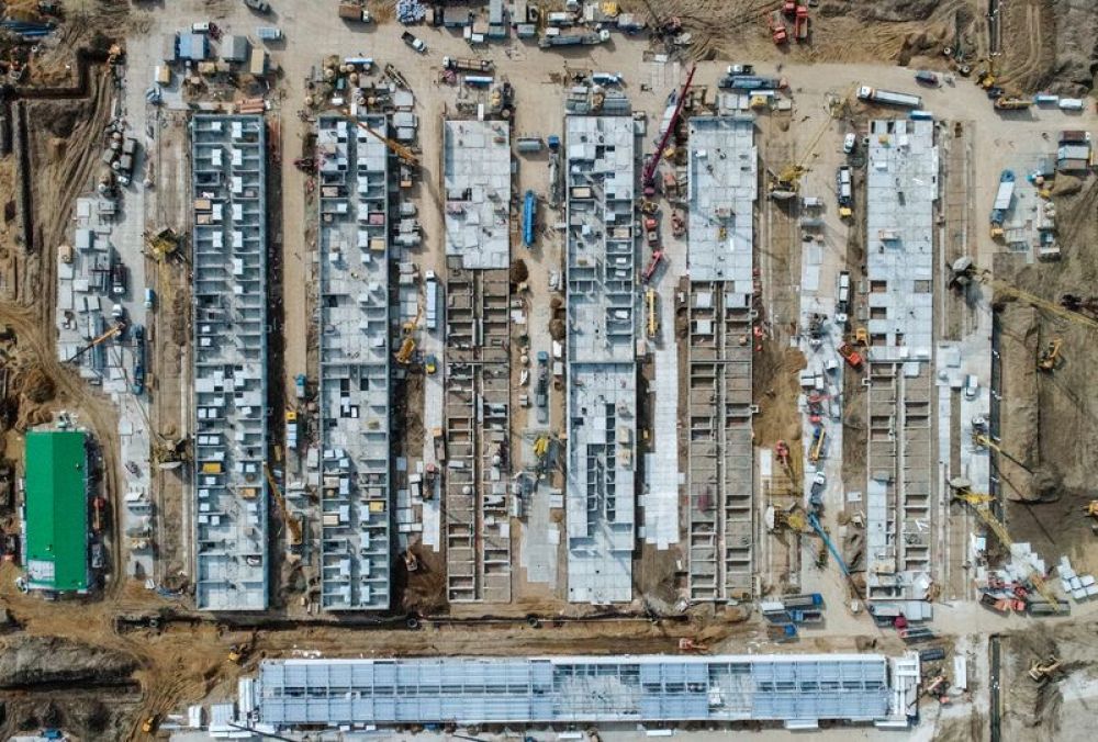 這是3月27日在俄羅斯首都莫斯科市郊拍攝的方艙醫(yī)院施工現(xiàn)場(chǎng)。新華社/衛(wèi)星社