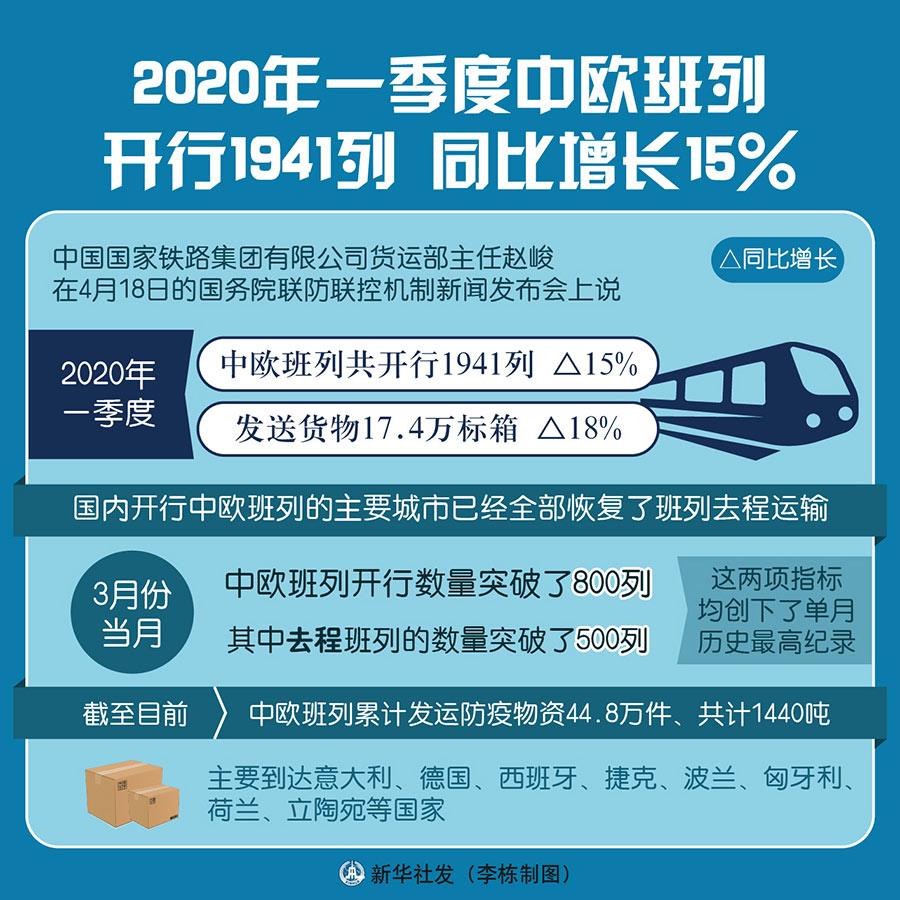 疫情之下,中歐班列成為防疫物資運(yùn)輸?shù)闹匾锪魍ǖ?。?jù)趙峻介紹,截至目前,中歐班列累計(jì)發(fā)運(yùn)防疫物資44.8萬(wàn)件、共計(jì)1440噸,主要到達(dá)意大利、德國(guó)、西班牙、捷克、波蘭、匈牙利、荷蘭、立陶宛等國(guó)家,并以這些國(guó)家為節(jié)點(diǎn),分撥到更多的歐洲國(guó)家,有力促進(jìn)了國(guó)際防疫合作。