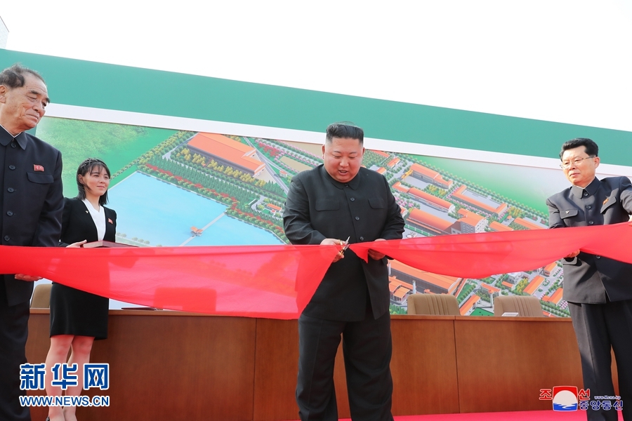 報道說,在歡迎曲中,金正恩來到竣工儀式現(xiàn)場,為肥料生產(chǎn)基地剪彩。