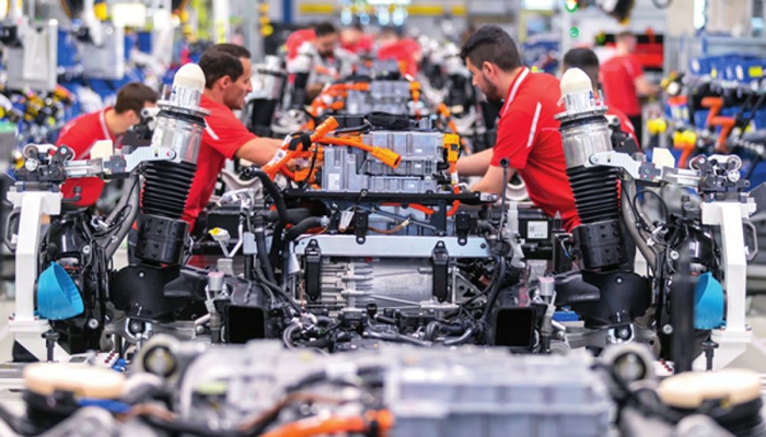 3月5日,工人在位于德國(guó)斯圖加特的保時(shí)捷汽車(chē)工廠生產(chǎn)線(xiàn)上工作