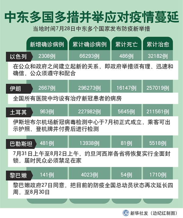 新華社突尼斯7月29日電 綜合新華社駐中東地區(qū)記者報道:為進(jìn)一步應(yīng)對中東多國持續(xù)蔓延的新冠疫情,同時防止因宰牲節(jié)人群聚集加劇疫情擴(kuò)散,中東多個國家28日發(fā)布防疫新舉措。