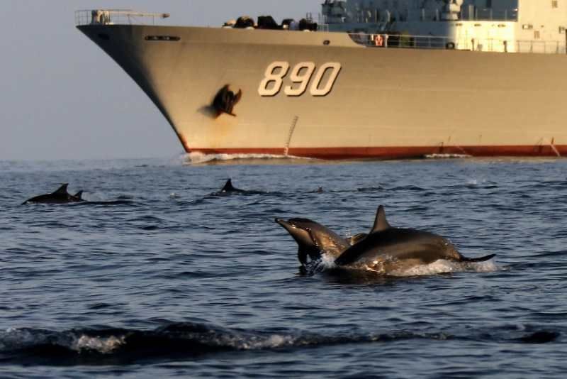 中國(guó)海軍赴亞丁灣索馬里海域護(hù)航編隊(duì)始終秉持海洋命運(yùn)共同體理念,堅(jiān)持人與大海和諧相處,注重生態(tài)環(huán)境保護(hù),贏得大自然積極回報(bào),經(jīng)常出現(xiàn)編隊(duì)艦艇航行時(shí)有成群海豚伴航、待機(jī)集結(jié)時(shí)有各類魚群相伴的和諧場(chǎng)景。