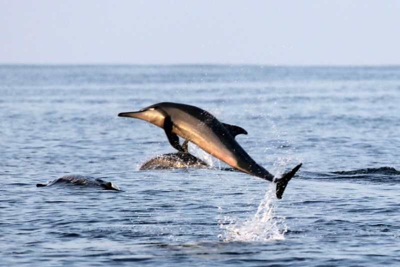 據(jù)到亞丁灣執(zhí)行過9批次護(hù)航任務(wù)的二級(jí)軍士長(zhǎng)李小文介紹,在亞丁灣這片海域,數(shù)十條海豚伴隨護(hù)航艦艇航行最為常見。今天這群在亞丁灣中部海域出現(xiàn)的海豚數(shù)量之多、規(guī)模之大、隨艦歡騰之長(zhǎng),他也是第一次見到。(鐘魁潤(rùn)攝影報(bào)道)