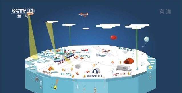 科考隊還花了18天時間,在浮冰上搭建起一座研究基地??瓶妓玫脑O(shè)備都被布放在不同的分區(qū),在“水下機器人”中心,利用遠程操作工具,就可以收集海冰之下的觀測數(shù)據(jù),并將這些數(shù)據(jù)傳回“極星”號;在海洋中心,科考隊員在冰層上鉆孔,把觀測設(shè)備降至海冰之下,采集海水樣本;在海冰研究中心,科考隊員們可以研究和觀察海冰和冰上的雪覆蓋。而在大氣中心,科學家們可以收集研究大氣和空氣成分。