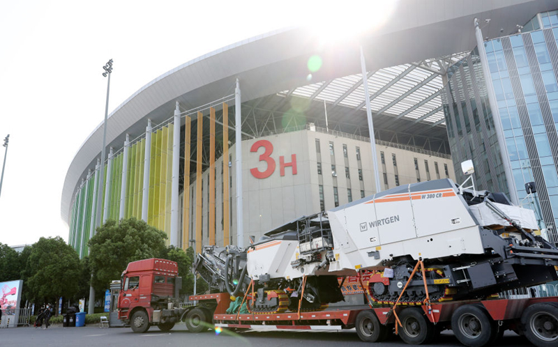 第三屆進(jìn)博會(huì)的首件進(jìn)場(chǎng)展品——德國(guó)維特根集團(tuán)W380CR冷再生機(jī)運(yùn)抵國(guó)家會(huì)展中心(上海)(10月23日攝)。新華社記者 方喆 攝