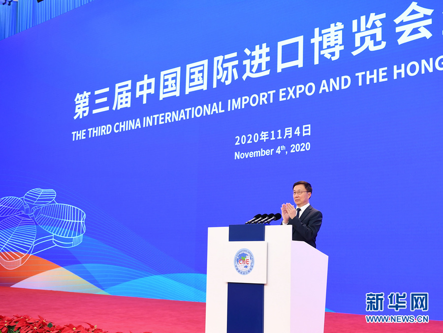 11月4日,中共中央政治局常委、國(guó)務(wù)院副總理韓正在上海出席第三屆中國(guó)國(guó)際進(jìn)口博覽會(huì)開幕式。這是韓正宣布第三屆中國(guó)國(guó)際進(jìn)口博覽會(huì)開幕。 新華社記者 燕雁 攝