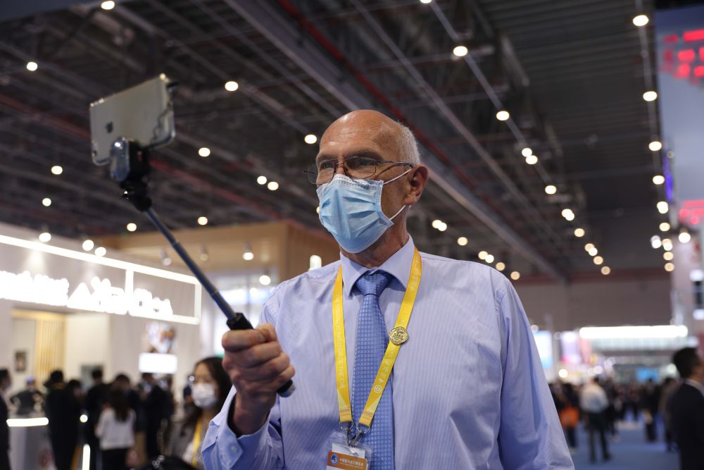 11月7日,羅伊在進博會場館內自拍留念。