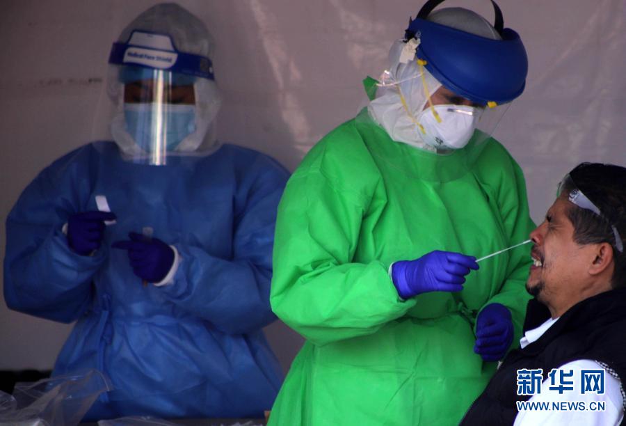 11月14日,在墨西哥首都墨西哥城,醫(yī)務(wù)人員為一名男子采集檢測(cè)樣本。