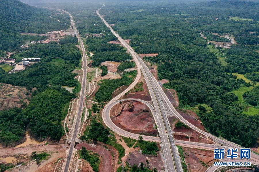 這是6月2日在老撾萬象省航拍的建設(shè)中的萬萬高速公路。(無人機(jī)拍攝)新華社發(fā)(云南建投集團(tuán)供圖)