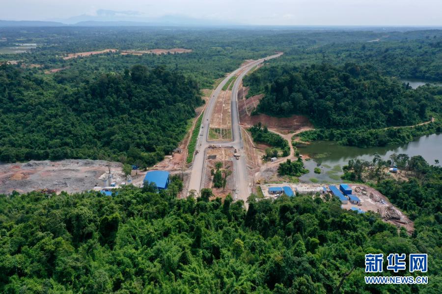 這是10月27日在老撾萬象省拍攝的建設(shè)中的萬萬高速公路。新華社發(fā)(凱喬攝)