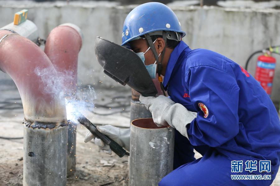 覺泰昂是正在接受項目組培訓的當?shù)毓と酥?。他剛來項目組上班時僅是一名普通的安裝工,因為他對電焊感興趣,又掌握一些基本的焊接知識,項目組的師傅就開始教他做些簡單的焊接工作。教覺泰昂電焊技能的師傅田志章說:“提前幫他調好尺寸,接好焊點,每焊兩厘米左右就幫他檢查一下,一般的支架和管道焊接他已經(jīng)能做得很好?!?/p>