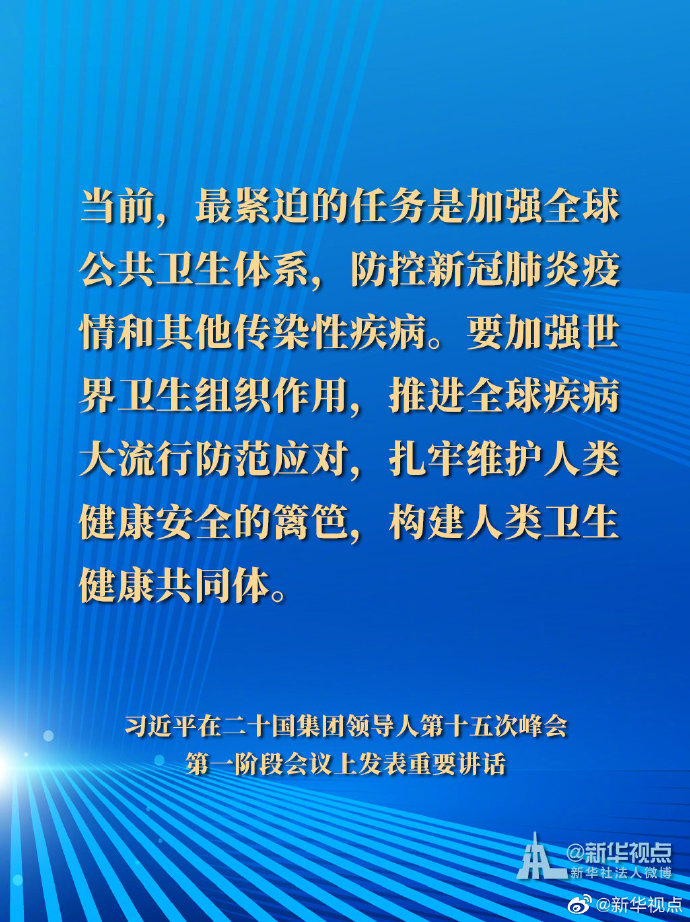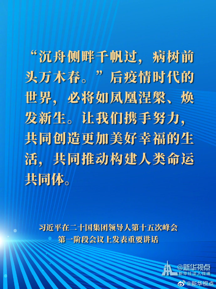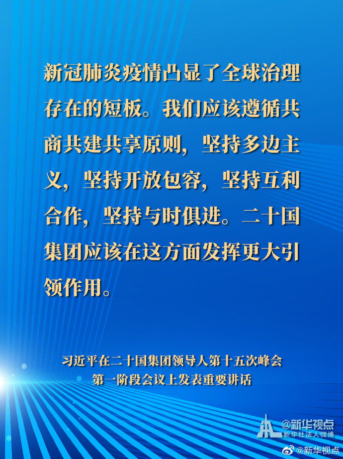 國家主席習(xí)近平21日晚在北京以視頻方式出席二十國集團(tuán)領(lǐng)導(dǎo)人第十五次峰會(huì)第一階段會(huì)議并發(fā)表重要講話。以下是講話要點(diǎn)。