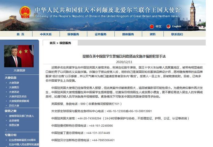 中國(guó)駐英國(guó)大使館網(wǎng)站截圖