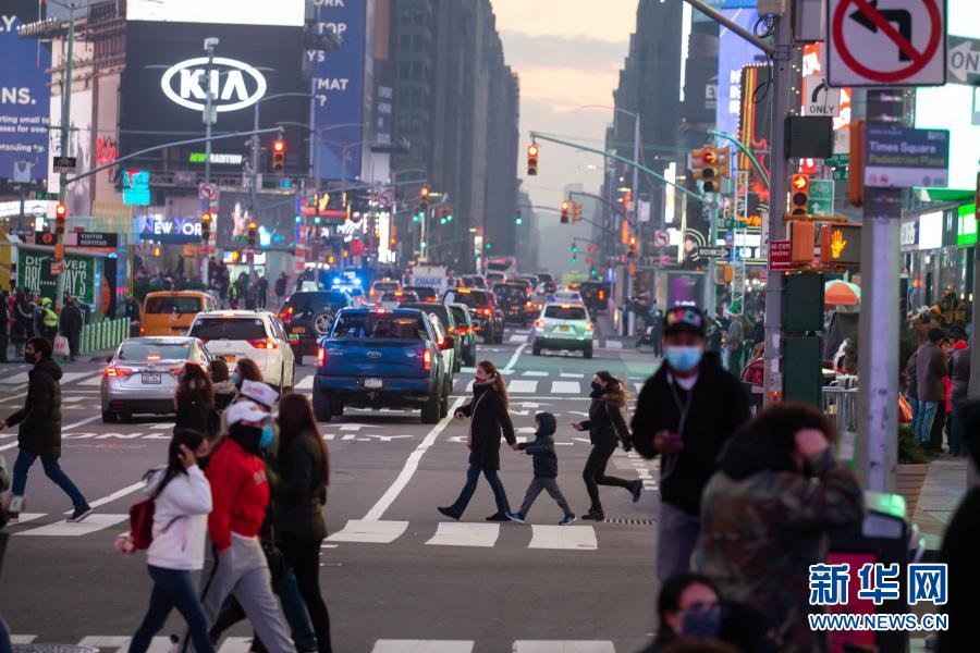 12月12日,行人走在美國紐約時(shí)報(bào)廣場上。新華社發(fā) (郭克攝)