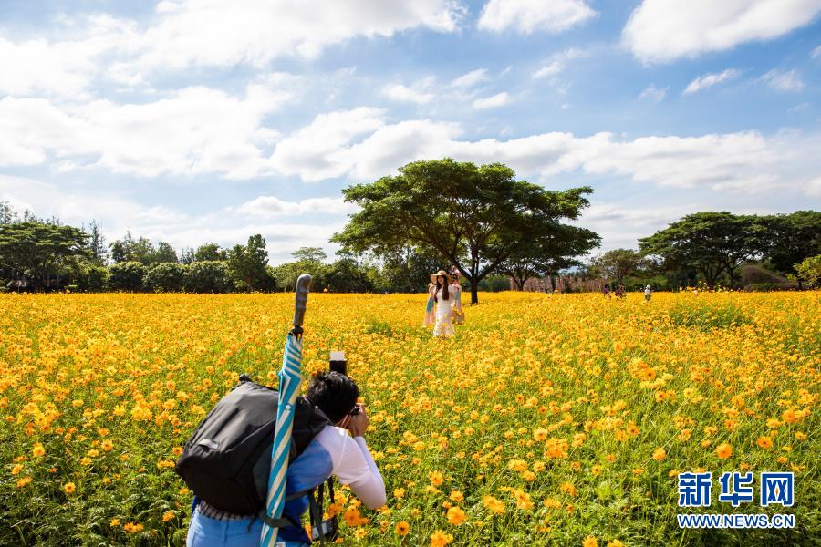 12月19日,游客在泰國呵叻府吉姆湯普森農(nóng)場參觀游覽時留影。