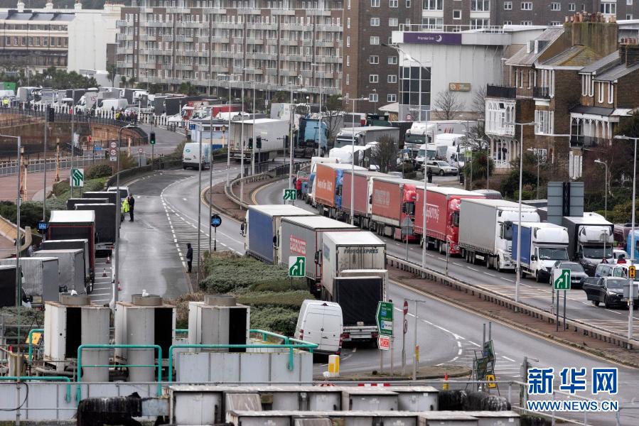 此前,為應對英國近期出現(xiàn)的變異新冠病毒,法國宣布從當?shù)貢r間20日午夜起48小時內禁止來自英國的所有人員旅行,包括與公路、鐵路、航空、水路有關的貨運人員旅行。這給英國與歐盟國家之間的貨物運輸帶來極大影響。自邊境關閉以來,大約有2850輛卡車被困在英國肯特郡。