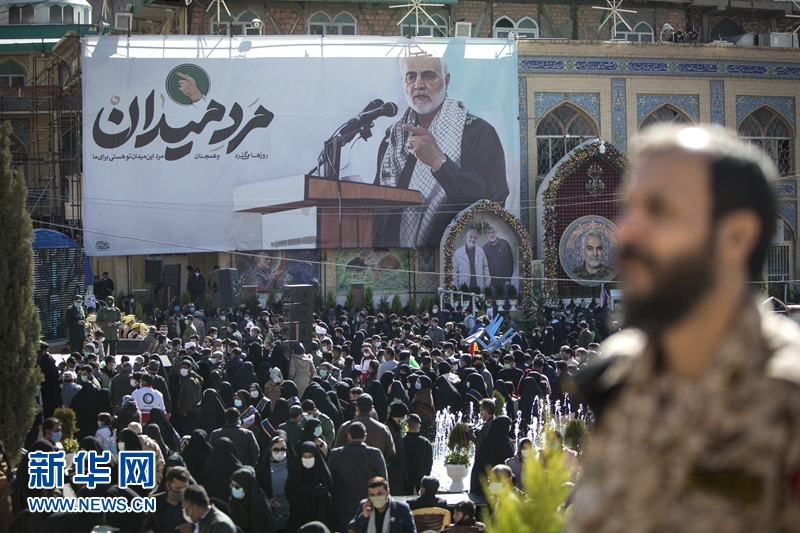2021年1月2日,人們在位于伊朗克爾曼的伊斯蘭革命衛(wèi)隊下屬“圣城旅”指揮官蘇萊曼尼墓附近參加他的遇難周年悼念活動。2020年1月3日,美國在伊拉克首都巴格達發(fā)動襲擊,殺死伊朗伊斯蘭革命衛(wèi)隊下屬“圣城旅”指揮官蘇萊曼尼等人。新華社發(fā)(艾哈邁德·哈拉比薩斯攝)