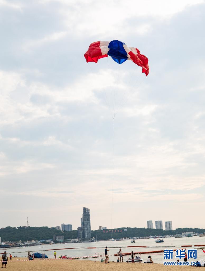 4月9日,人們在泰國芭堤雅海灘上放風箏。