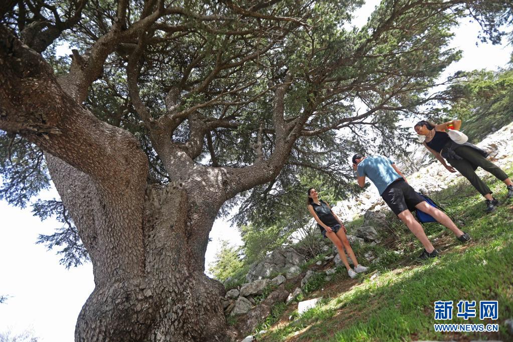 4月18日,游人在黎巴嫩巴魯克雪松保護(hù)區(qū)內(nèi)游覽。