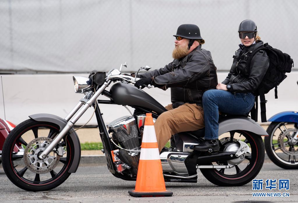 5月30日,在美國(guó)首都華盛頓,人們參加“滾雷”摩托車大游行。