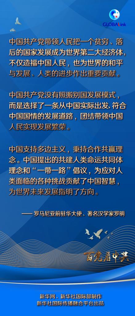 羅明認(rèn)為,成立一百年來,中國共產(chǎn)黨擔(dān)當(dāng)使命,踐行承諾,贏得人民信任,帶領(lǐng)中國取得偉大成就。