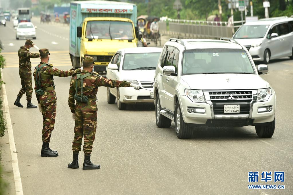 7月1日,軍人在孟加拉國(guó)達(dá)卡的街道上攔停過(guò)往車輛。