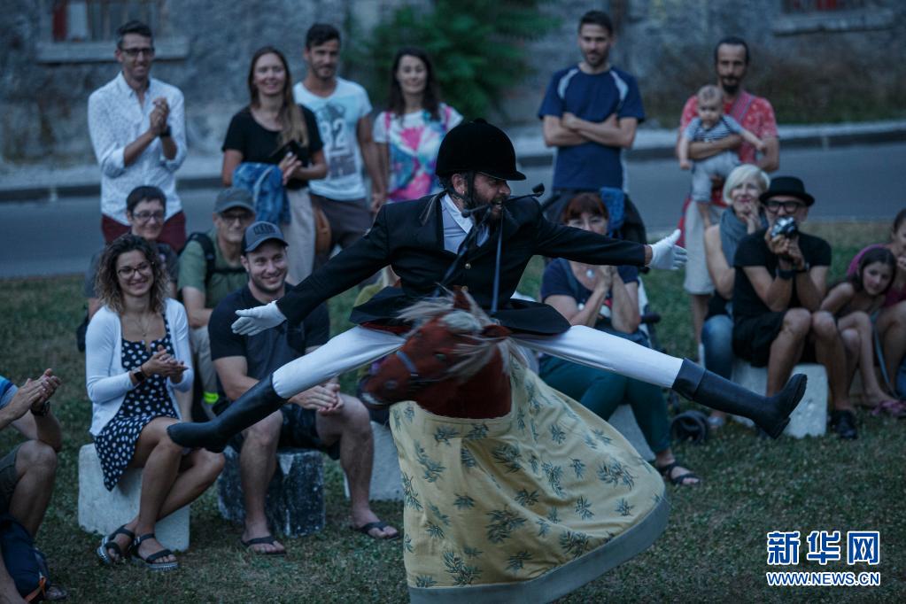6月30日傍晚,藝術(shù)工作者在斯洛文尼亞首都盧布爾雅那進行街頭戲劇節(jié)表演。